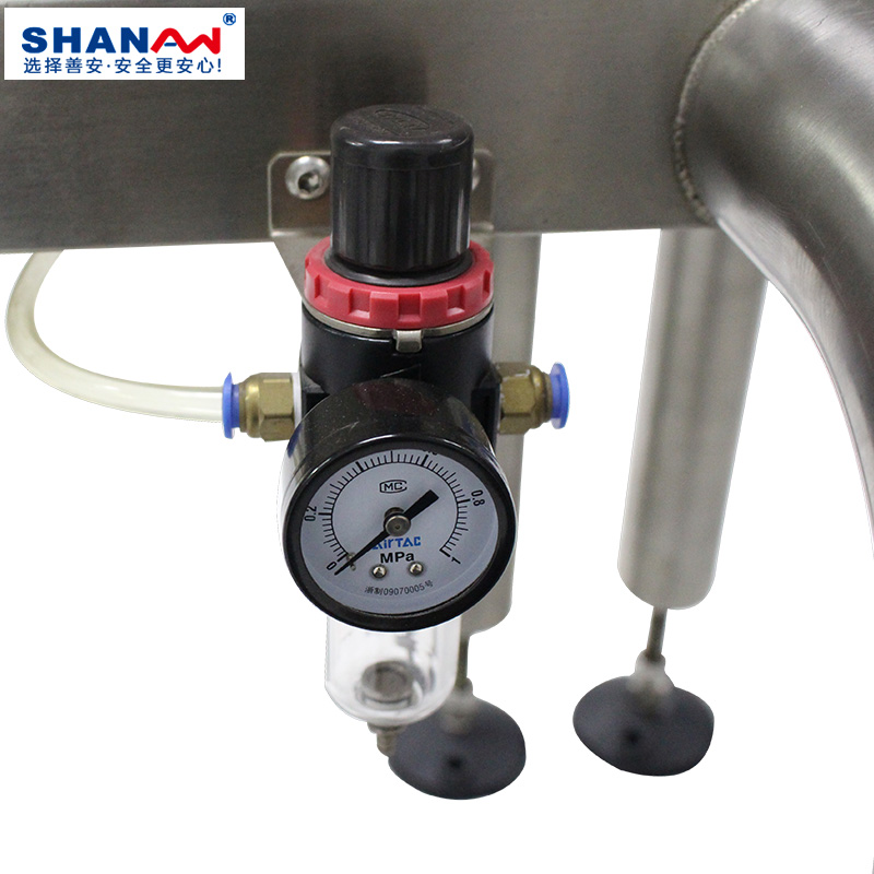 | 6 | 氣吹式剔除裝置,防止產品未100%剔除故加裝兩個氣嘴進行確認,保證檢測物的完整性,針對不同產品做不同的剔除方式。 |